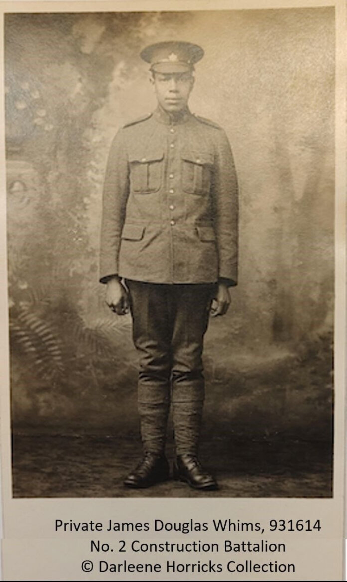 Three Salt Spring men served with the Batallion: Private James Douglas Whims was born on Salt Spring Island at the turn of the last century and died in France in 1918; he is buried in a segregated plot at the military cemetery in Etaples, France. His brother, Private Robert Clark Whims, also born on Salt Spring, served alongside him and returned home alone. The brothers were descendants of Hiram Whims, one of Salt Spring’s earliest Black settlers who arrived in 1859. Sapper James Edward Wintworth, a mechanic living in Ganges at the time of his enlistment, also served with the Battalion; he is buried at Central Cemetery.