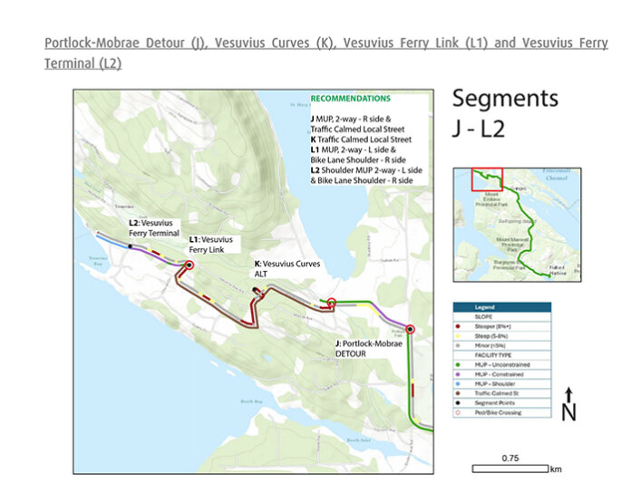 That hesitance came even with the CRD Board’s budget allocation of $300,000 in design funding already made, albeit slated to start in 2027 — and after an exhaustive multi-agency feasibility study concluded the trail represented a “significant opportunity” to enhance active transportation across Salt Spring, laying out groundwork on routes and trail designs.