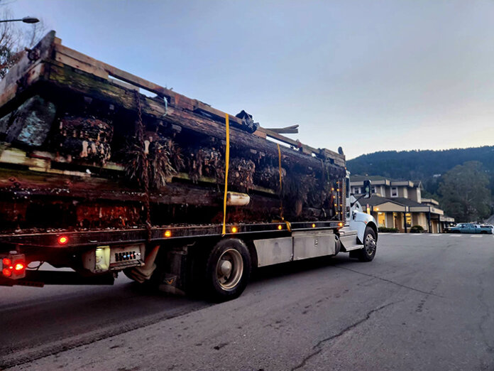 Transport Canada confirmed the harbour clean-up work was completed through the federal Navigation Protection Program (NPP), telling the Driftwood a total of 10 derelict docks were removed from Salt Spring Island’s busiest waterway on Tuesday, Feb. 24. Several local companies — including Eagle Eye Marine, Health Cooper Trucking, Island Marine Construction and Salt Spring Garbage & Recycling — were seen taking part in a coordinated effort to tow in, lift out, load up and haul away the poor-condition docks, all of which had been tagged by the federal agency.