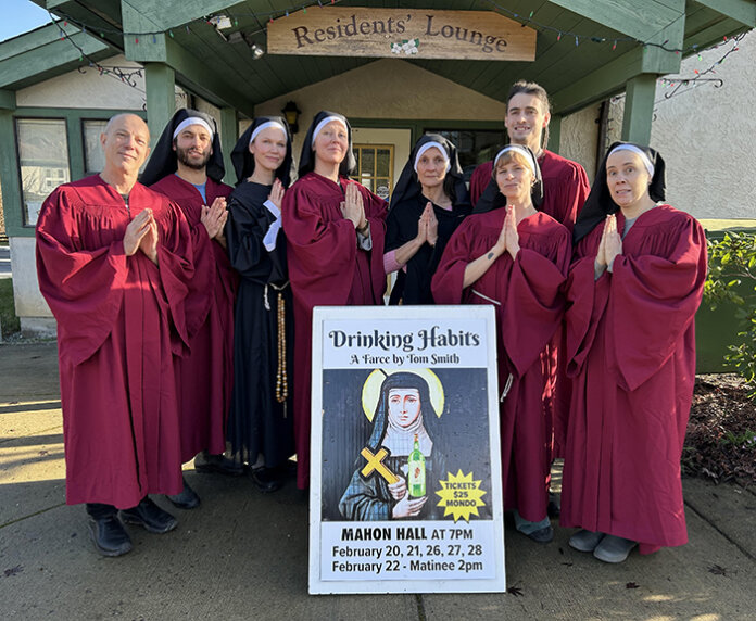 Drinking Habits runs at Mahon Hall on Friday-Saturday, Feb. 20-21 at 7 p.m., and Sunday, Feb. 22 at 2 p.m. It finishes with three 7 p.m. shows on Feb. 26, 27 and 28. The local BCSPCA branch will be selling concession goodies.