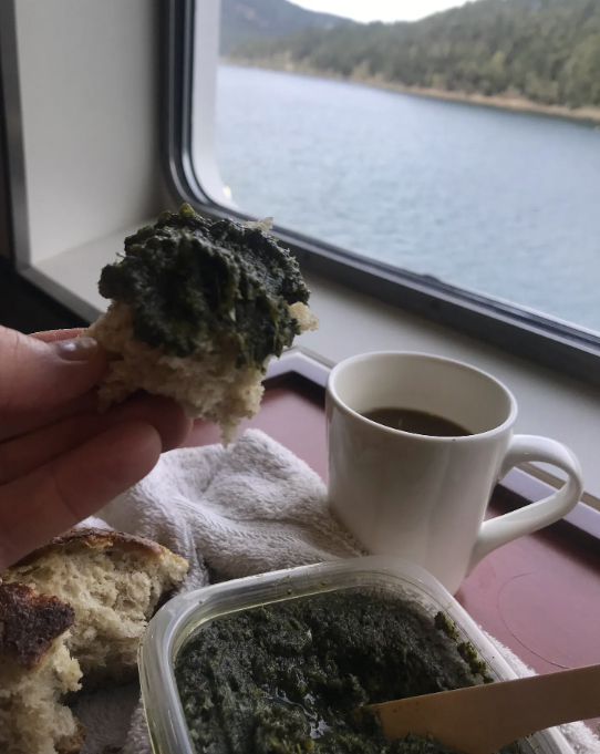 Next day, I’m en route home to Salt Spring. My body feels replete and I’m well-provisioned with nettle breakfast. I feel better connected to this community and landscape through my primal belly. One of my fingers still tingles from nettle stings.