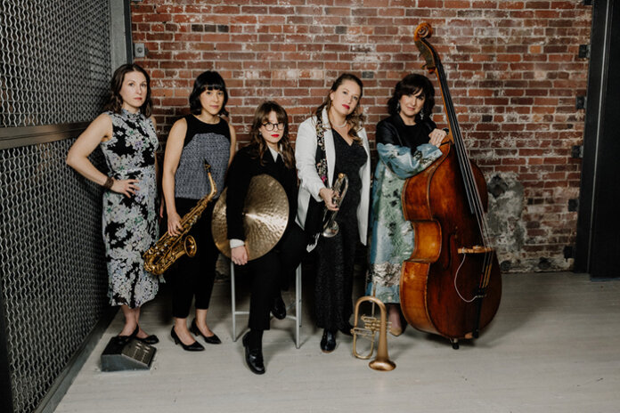 The Ostara Project has a “fluid” membership, wherein members can join for an album or a tour when they’re able and can step back when they need. This week’s ensemble consists of Ostara’s co-founders, bassist Proznick and pianist Amanda Tosoff, along with Claire Devlin on saxophone, Rachel Therrien on trumpet, Valérie Lacombe on drums and Kim Zombik on vocals.